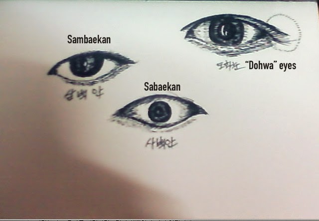 T/N: Sambaekan is an eye type where the iris is a bit smaller and the whites of the eyes (either above or below) stand out more. (Art credit + blog post link)